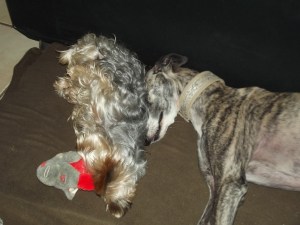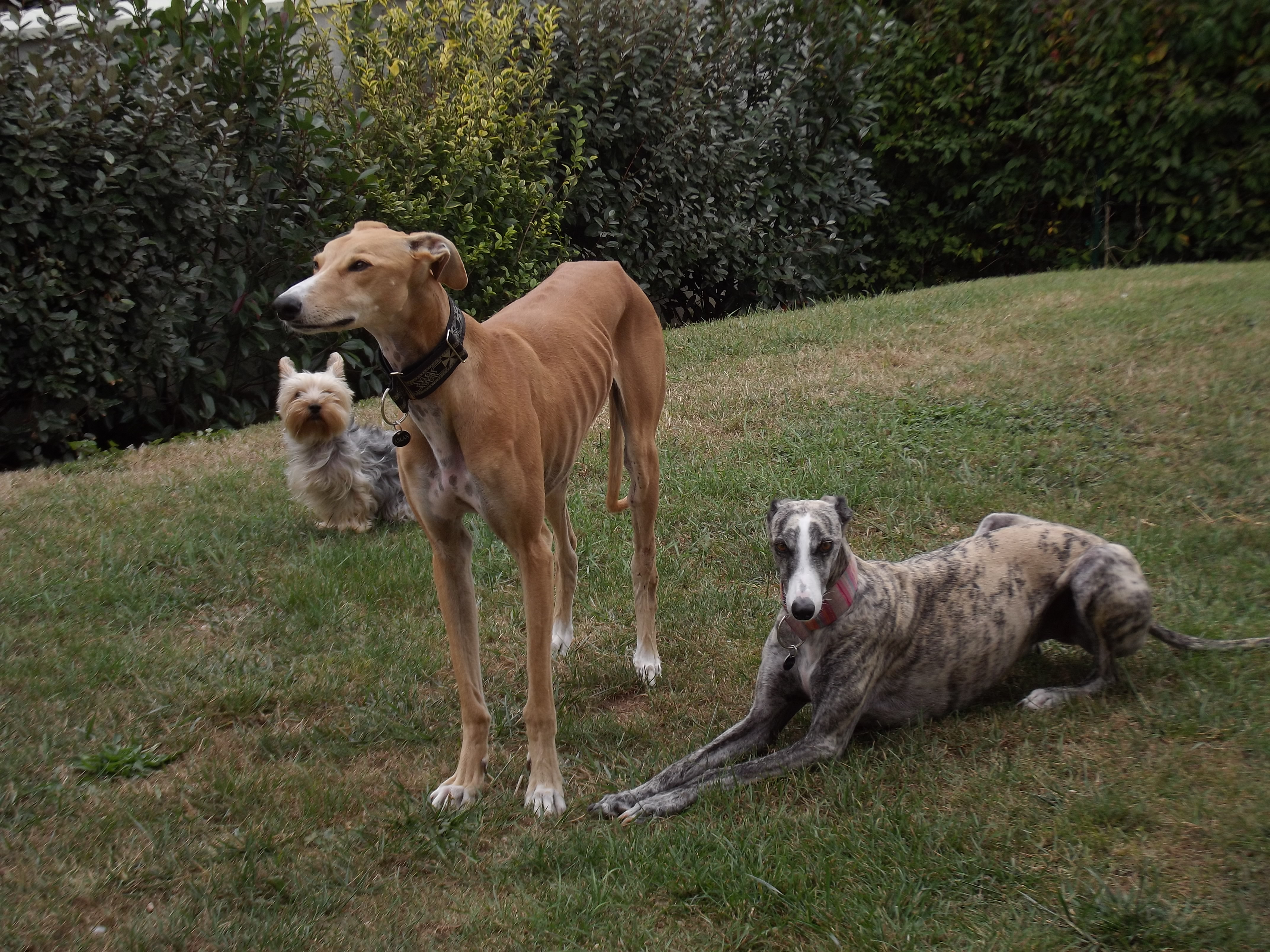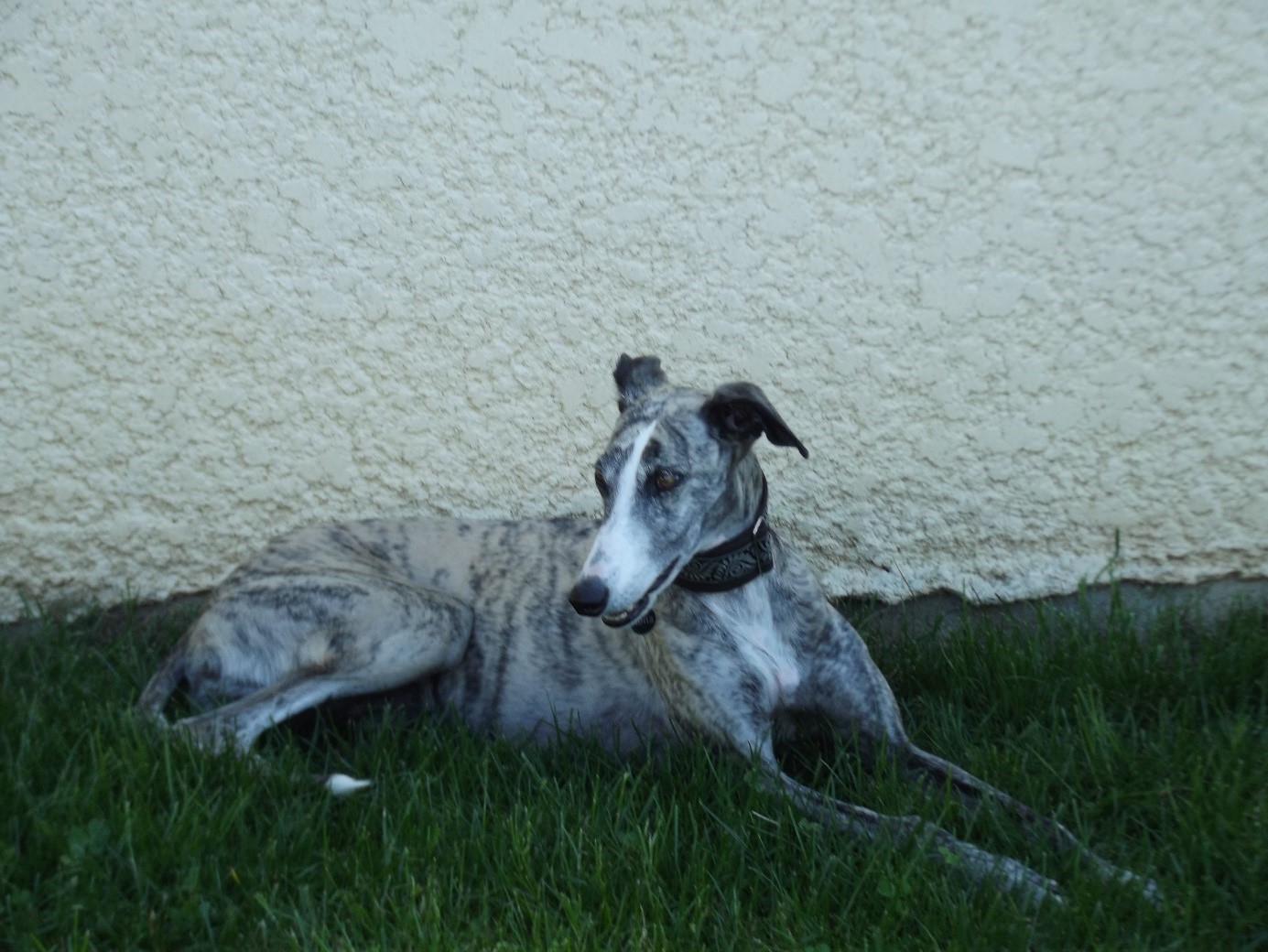 Malgré tout, il manquait quelque chose. Enfin,… il ME manquait quelque chose : elle restait discrète, indépendante et j’oserai dire éteinte : elle était certes contente de nous voir mais elle ne courait pas à fond comme savent le faire tous les lévriers et ne jouait pas non plus. Il faudra attendre presque 6 mois pour qu’enfin elle ose se lâcher un petit peu, un tout petit peu.