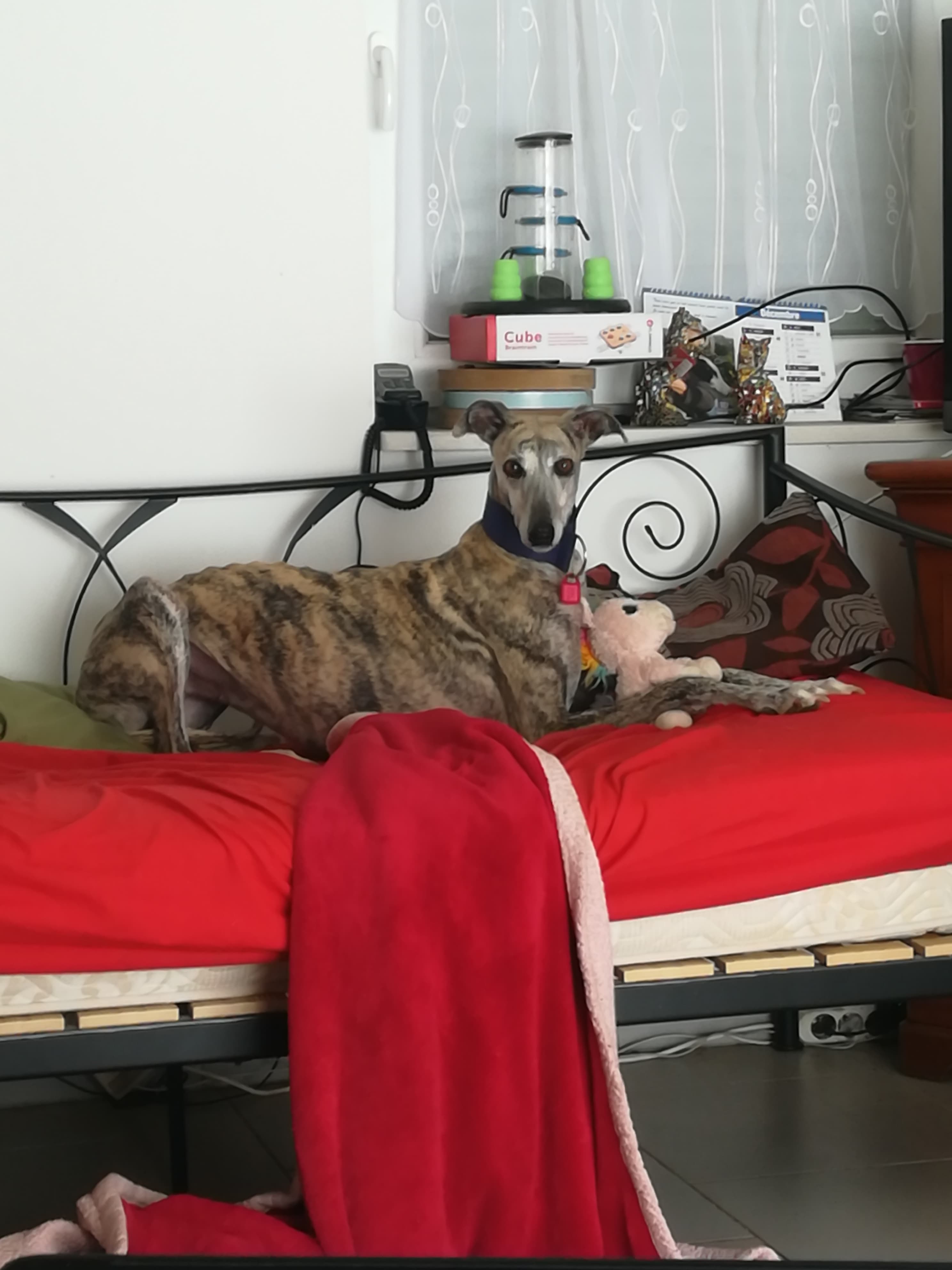 Notre 1ère galga, adoptée il y a 5 ans était hyper craintive, peur de tout et on avait encore notre merveilleux Labrador, très calme, pèpère tranquille qui a beaucoup aidé à apaiser notre fifille.