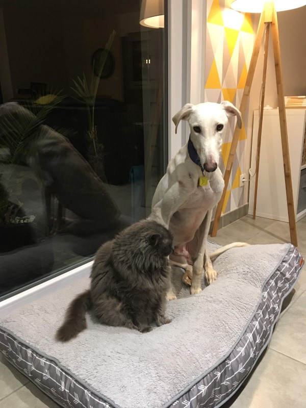 Il est déjà propre, il a tout appris en très peu de temps grâce aux galgos d’Amandine qui lui ont indiqué le chemin « du petit coin »